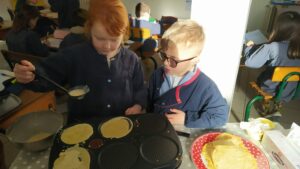 La chandeleur a été l’occasion pour les élèves de mettre la main à la pâte.